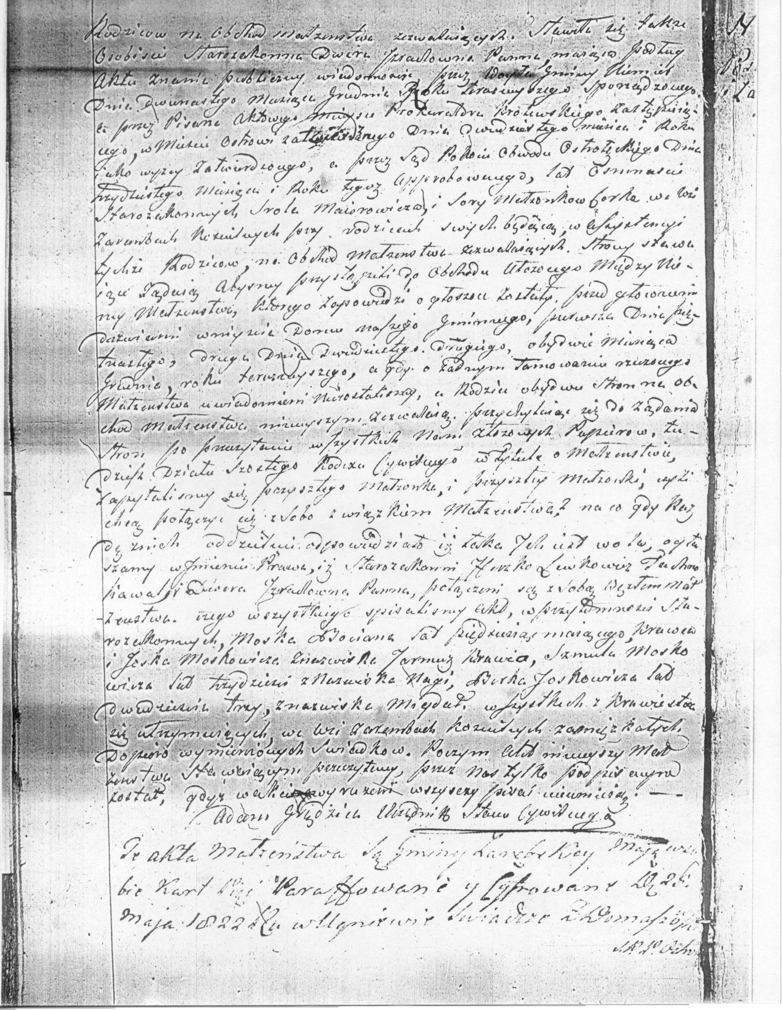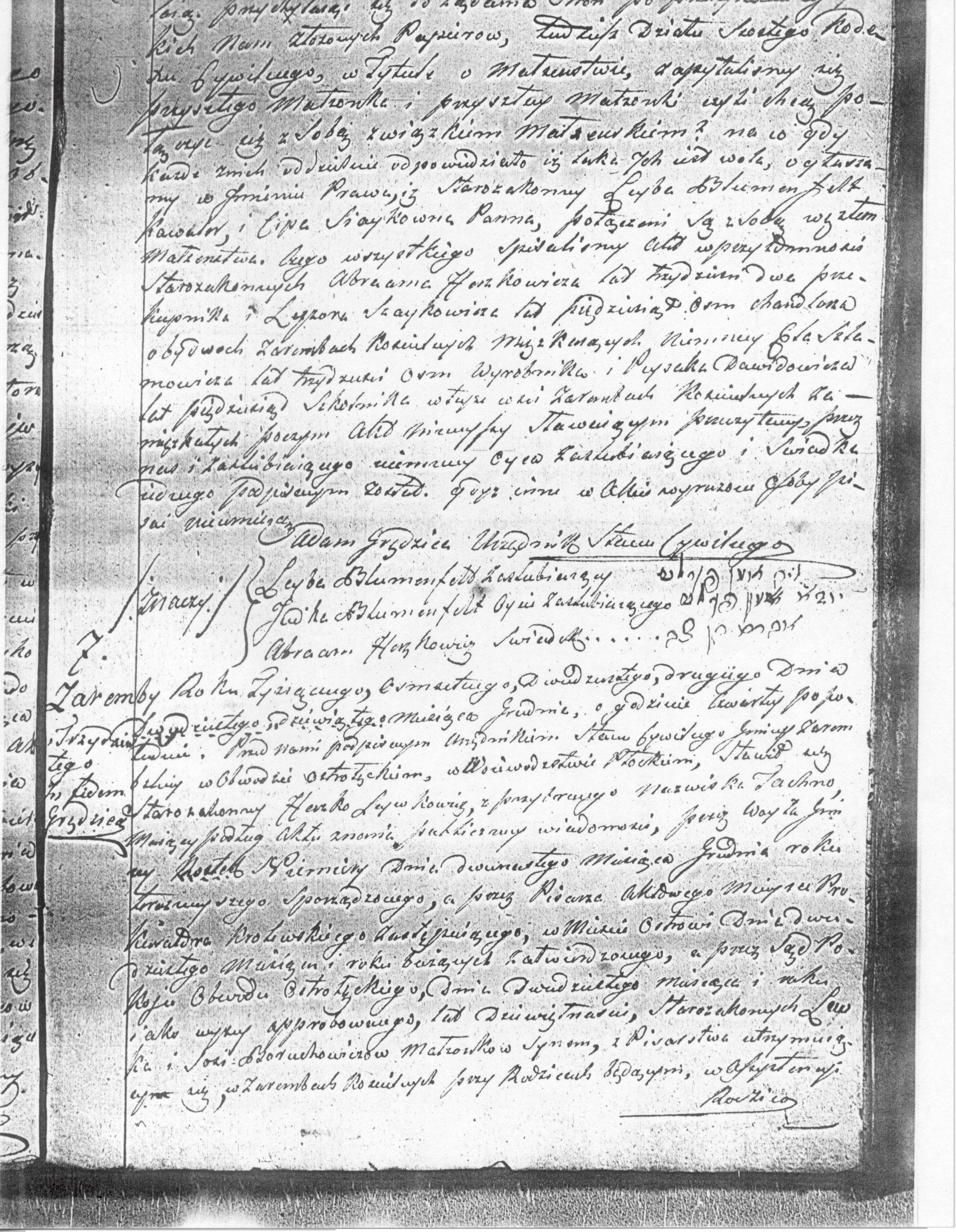 of Zaremby Koscielne, being here the witnesses. Whereupon this marriage
