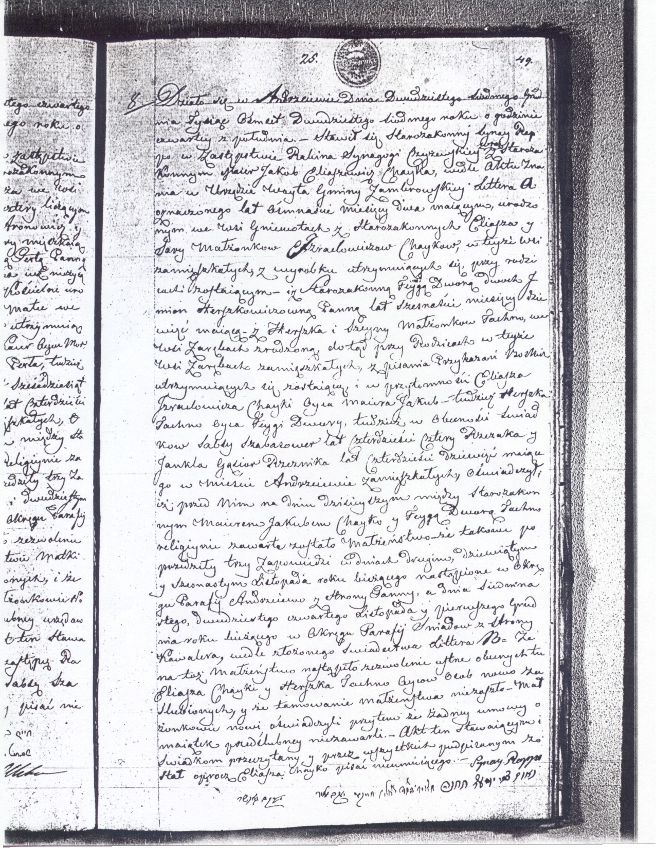 testified, that today the religious wedding of the Jews Maier Jakub