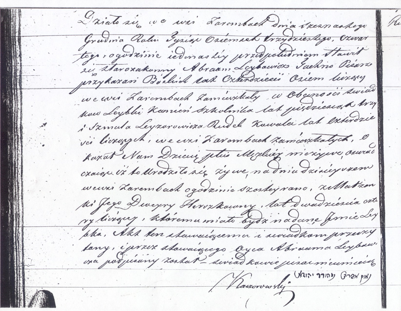 residing in the village of Zaremby, appeared in the presence of the