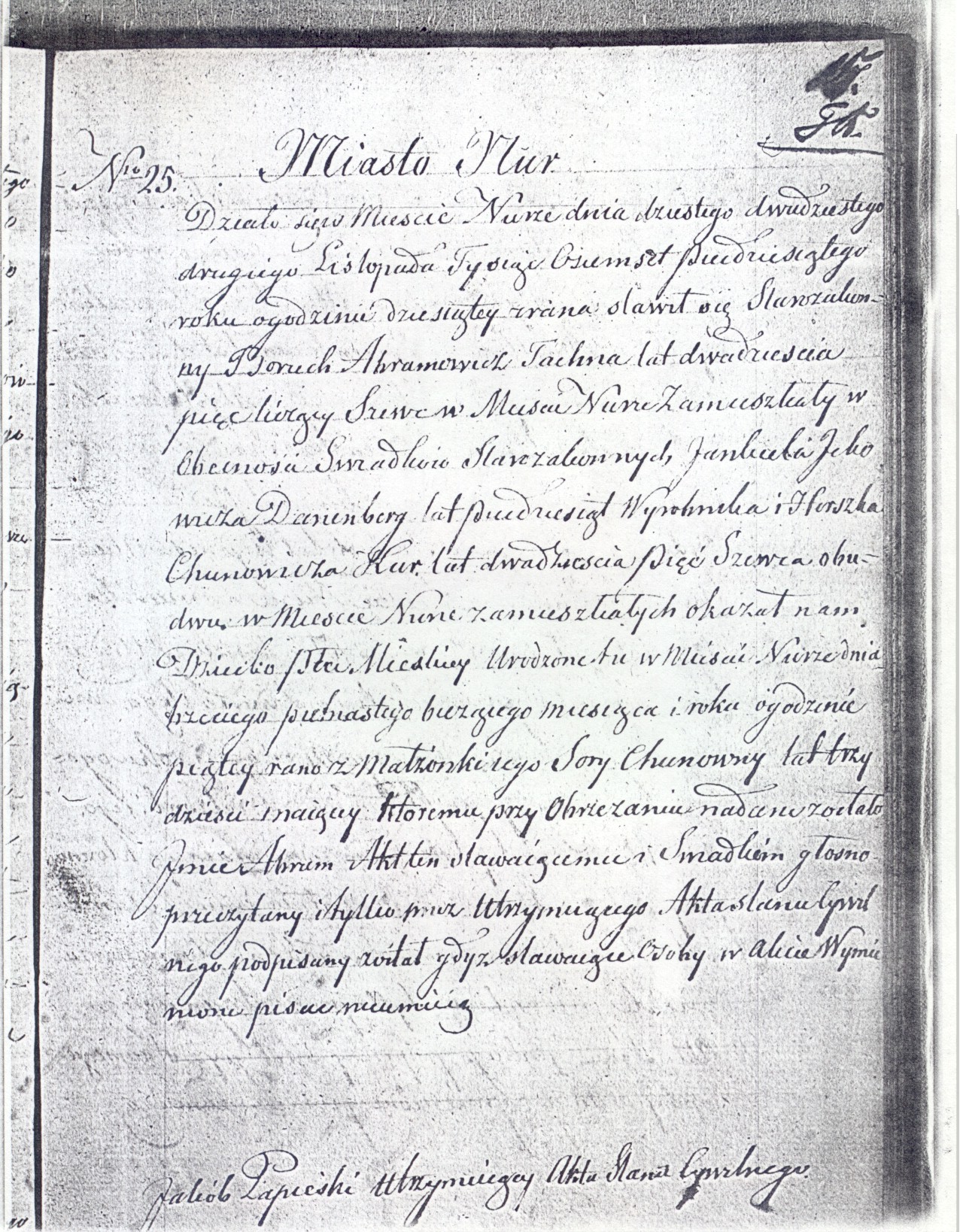 Nur, appeared in the presence of the witnesses the Jews Jankiel Ickowicz