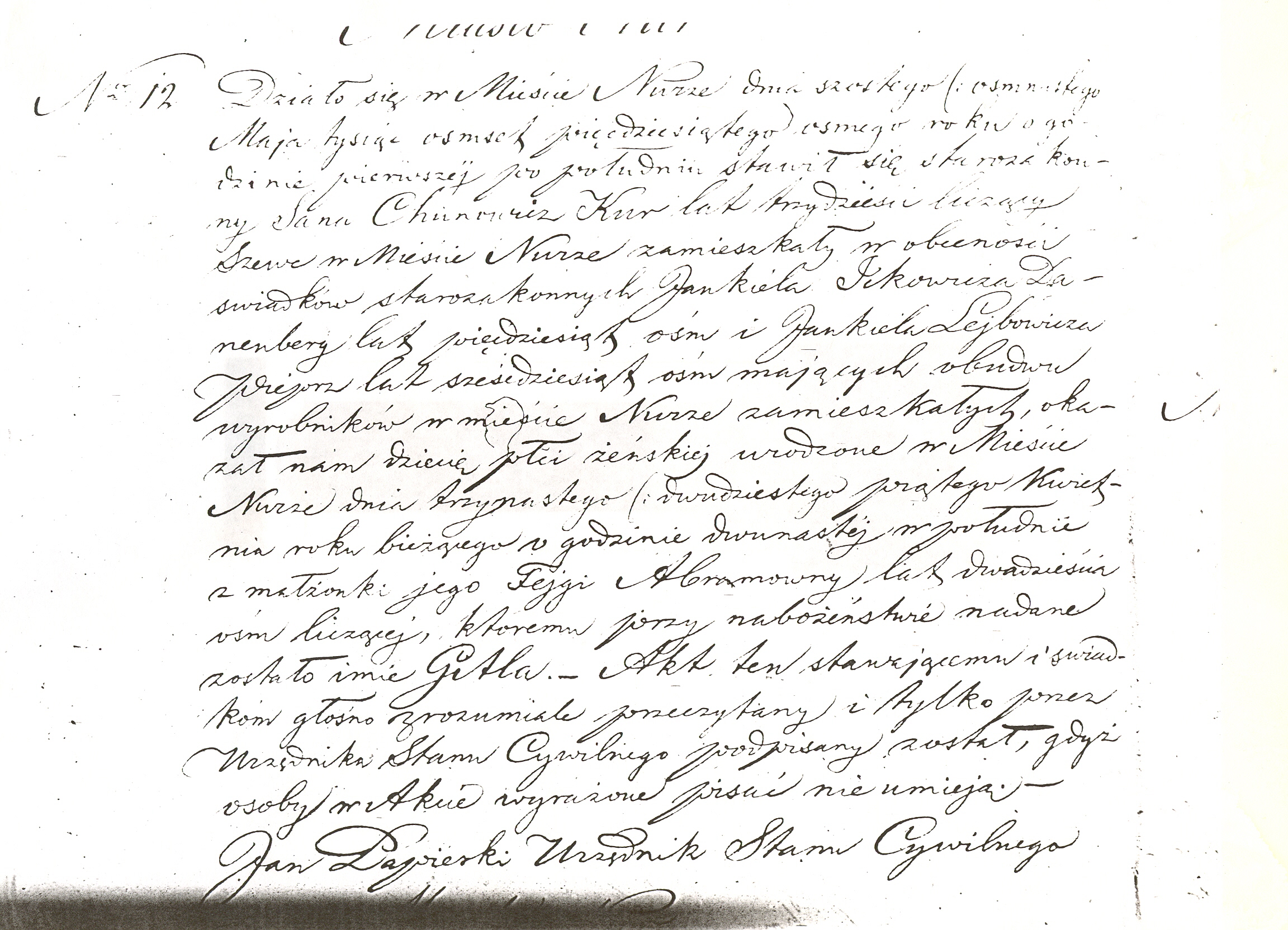 Jankiel Ickowicz Danenberg, a Jew, age fifty eight years old, and