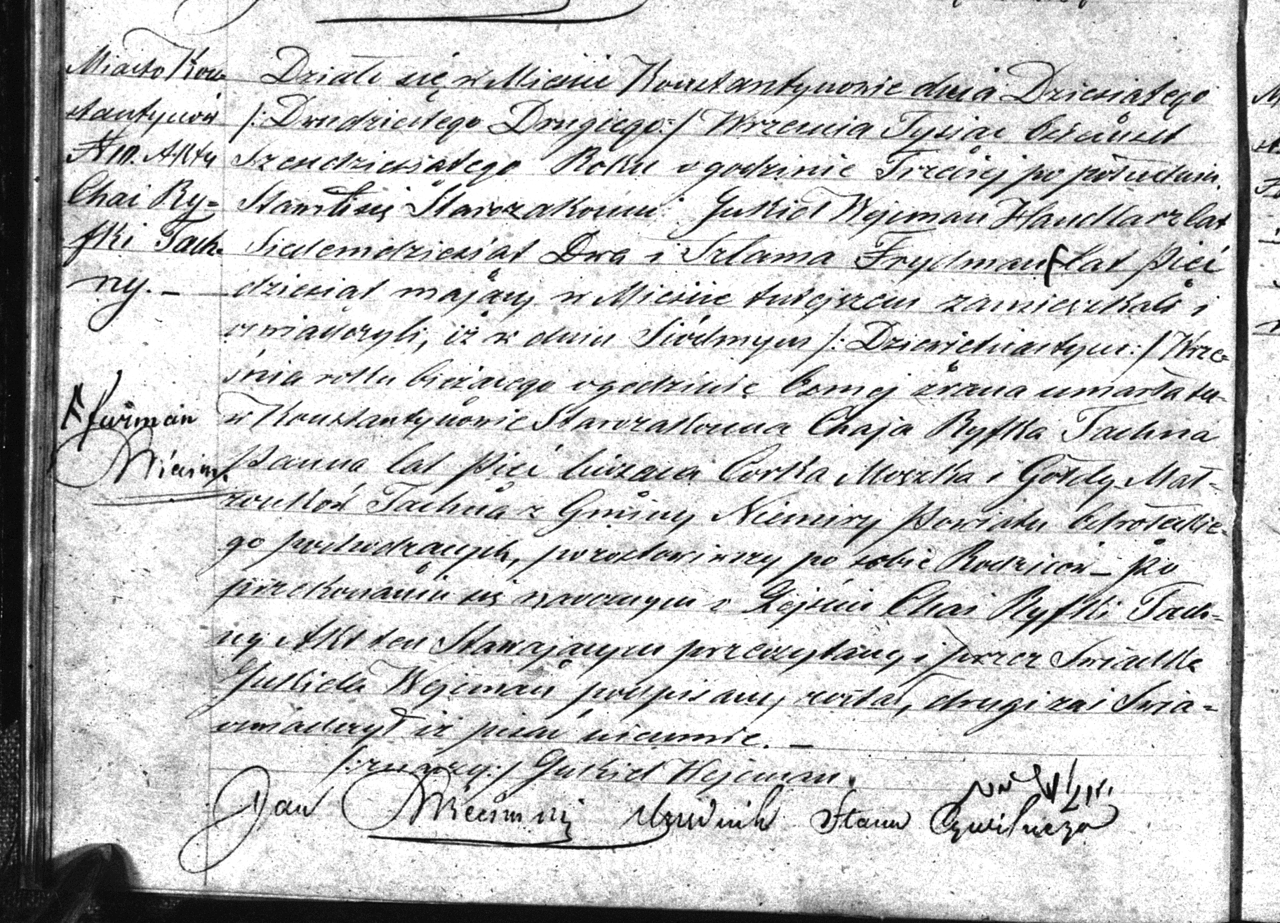 Tachna this document was read, and signed by the witness Jukiel Wejcman,