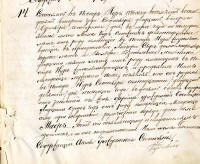 It took place in Nur, in eighteen hundred and eighty two, on September the twenty second/October the fourth, at three o’clock in the afternoon. Moszko Kur, a shoemaker, age nineteen years old, residing in Nur, have appeared with Lejzor Syr, age forty years old, a landlord, and Wolf Rozenblum, miller, age twenty five years old, residing in Nur. He showed us a baby boy who was born in Nur, on September the seventeenth/September the twenty ninth, this year; at ten o’clock at night to his wife Frajda née Ossowiecka, age twenty one years old. During the circumcision ceremony the baby was named Majer.  This document was read to testifiers and signed by a clerk of the registry office because testifiers are illiterate.