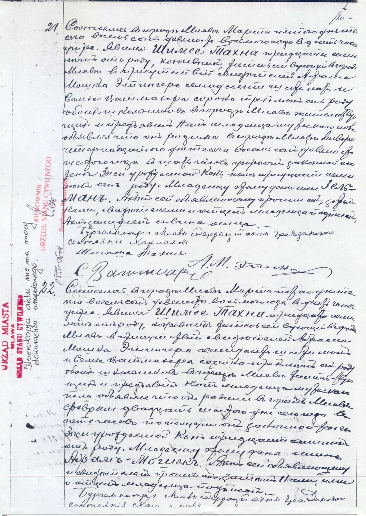 residing in the town of Mlawa, appeared in the presence of the witnesses