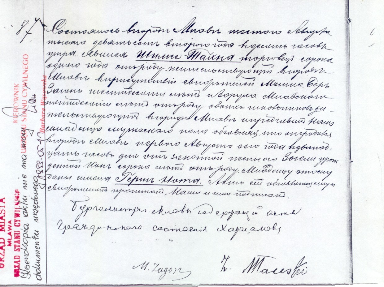 Mayor of Mlawa, Holder of the Civil Registry records.