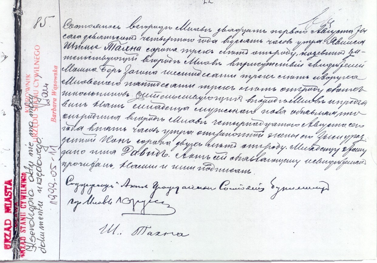 Holder of the Civil Registry records, the Mayor of Mlawa. |