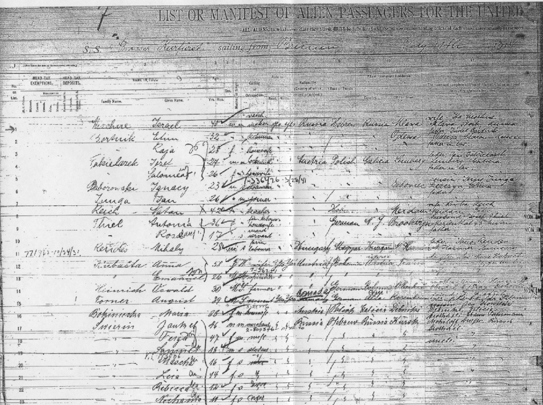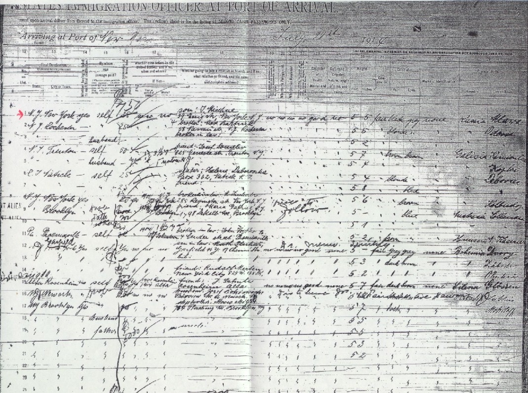 LIST OR MANIFEST OF ALIEN PASSENGERS FOR THE UNITED