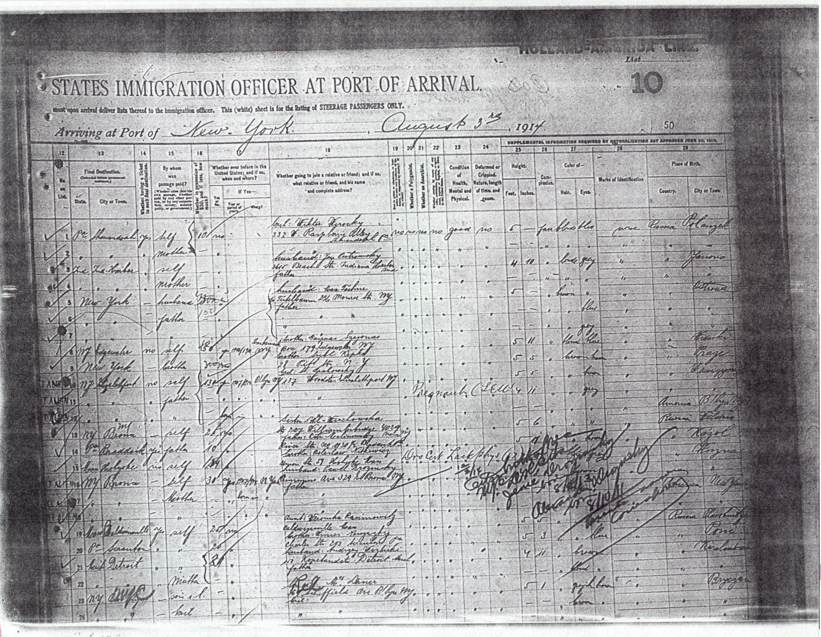 LIST OR MANIFEST OF ALIEN PASSENGERS FOR THE UNITED