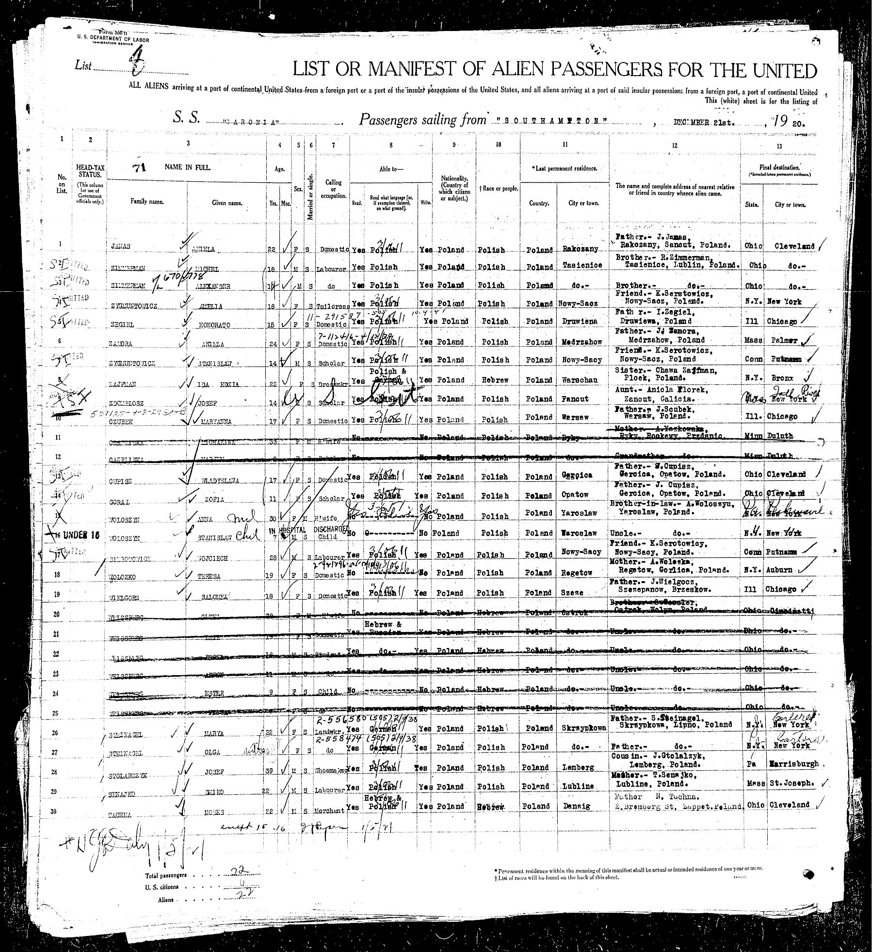 Arriving at Port of New York, December 31, 1920 |