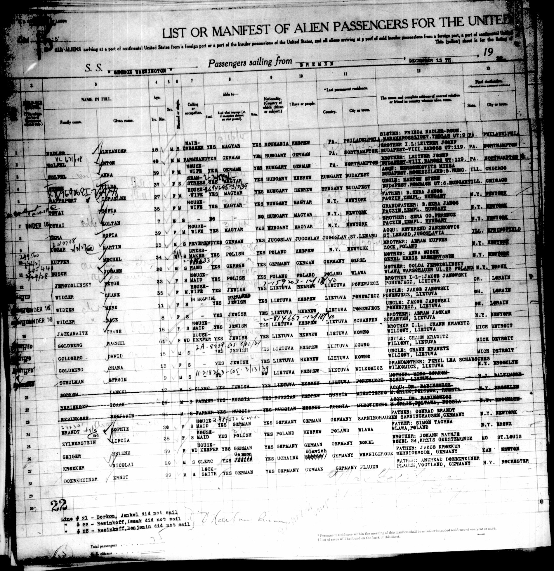 LIST OR MANIFEST OF ALIEN PASSENGERS FOR THE UNITED